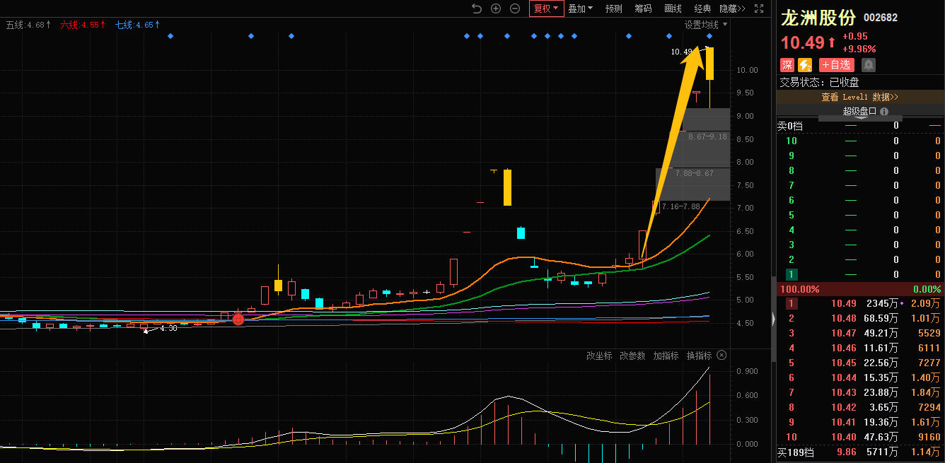 龙洲股份(福建+商业航天)更是回封涨停,在安记食品断板之后,成功晋级6板,成为市场的高度。全天近10股涨停。虽然尾盘航天发展小幅跳水跌破5日线,但是好像对整体板块的情绪没有那么大了,但是可以看到今天涨幅居前的基本没有航天2字的,更多的都是低位的补涨,毕竟这个方向的个股很多,趋势不行,就做低位补涨或者后排的接力。资金在各玩各的。风格上注意一下就是,但是短期商业航天最好赚钱的那个阶段过去了,因此后续还是很考验选股和买卖时机的把握的,这个阶段同时还需要关注大盘的清晰。明天龙洲股份挑战7板,近期几个挑战7板的个股都没有成功,所以高标近期还是要注意,可以多看看中低位的。