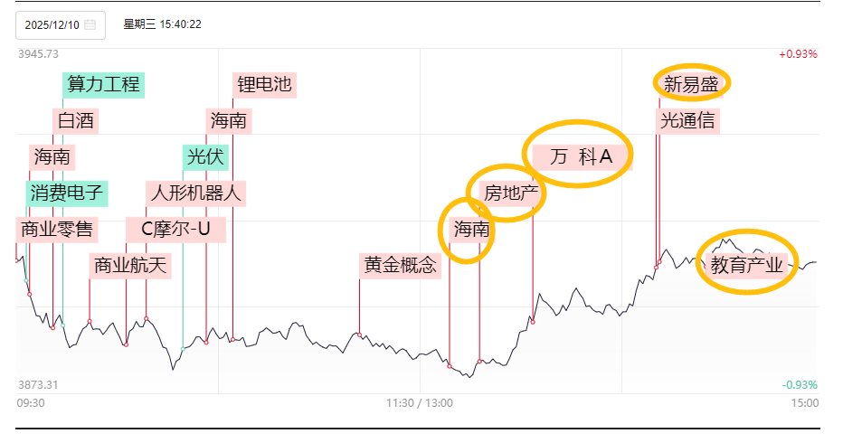 下午的盘面还是很精彩的,海南、地产、还有教育、光模块涨的各种出其不意。