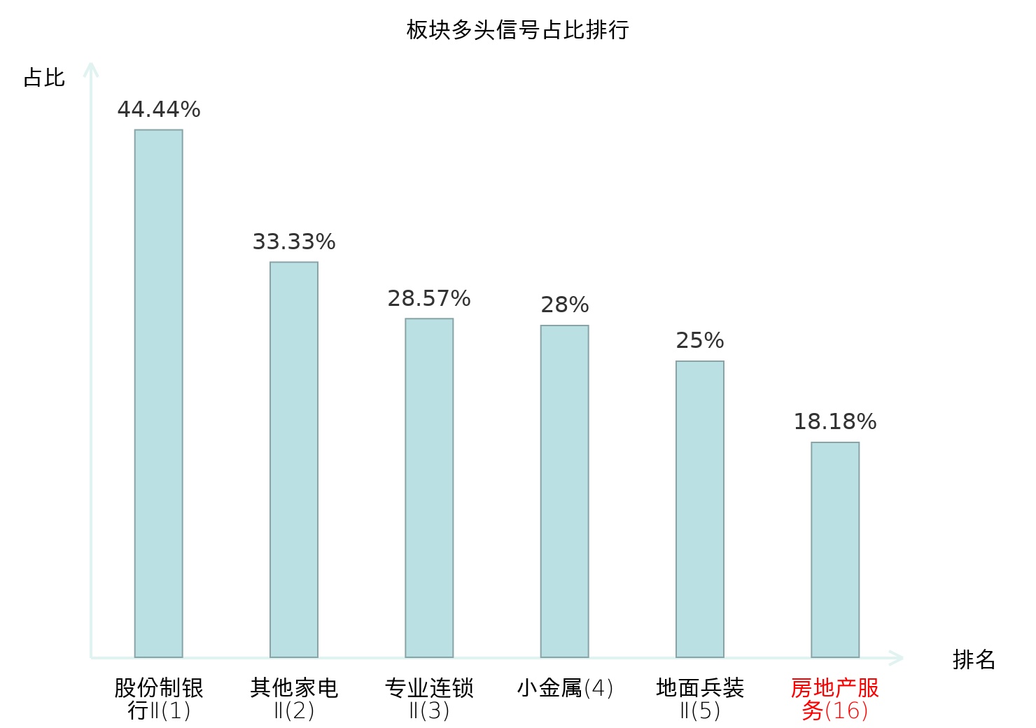 全市场所有行业板块中主力多头信号占比排名中,股份制银行Ⅱ板块位居第一。其他家电Ⅱ板块名次提升最快,较昨日上升127位。