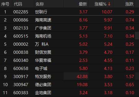 上证报中国证券网讯 12月10日午后,房地产板块震荡走强,截至13时28分,世联行拉升触及涨停,海南机场、万科A、华夏幸福、财信发展等跟涨。海南高速、广宇集团此前封板。