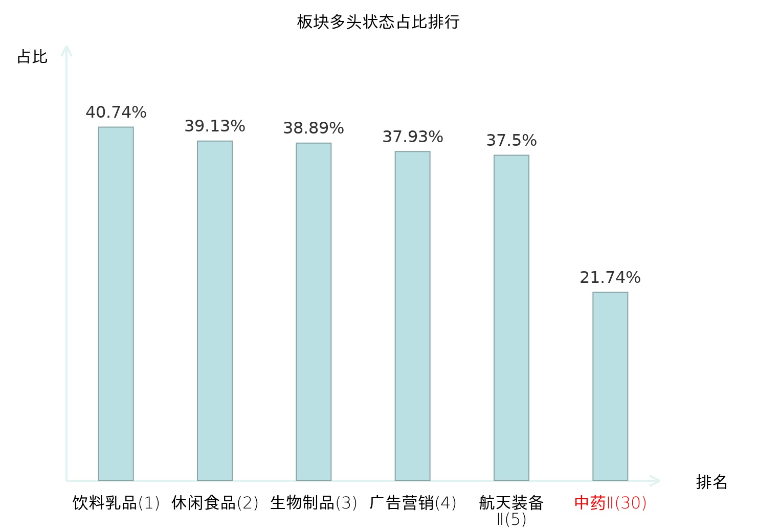 全市场所有行业板块中主力多头状态占比排名中,饮料乳品板块位居第一。国有大型银行Ⅱ板块名次提升最快,较昨日上升71位。