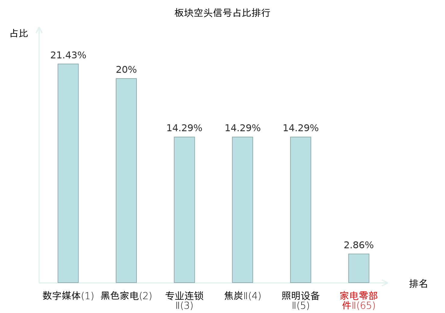 全市场所有行业板块中主力空头信号占比排名中,数字媒体板块位居第一。装修装饰Ⅱ板块名次提升最快,较昨日上升110位。