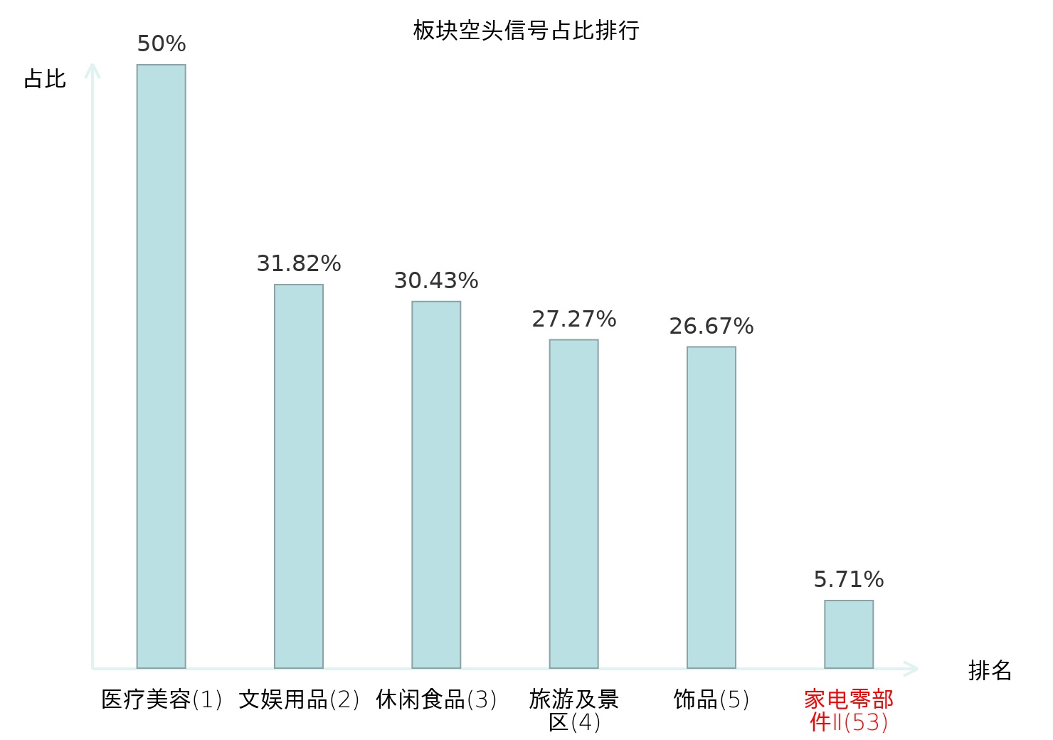 全市场所有行业板块中主力空头信号占比排名中,医疗美容板块位居第一。服装家纺板块名次提升最快,较昨日上升114位。