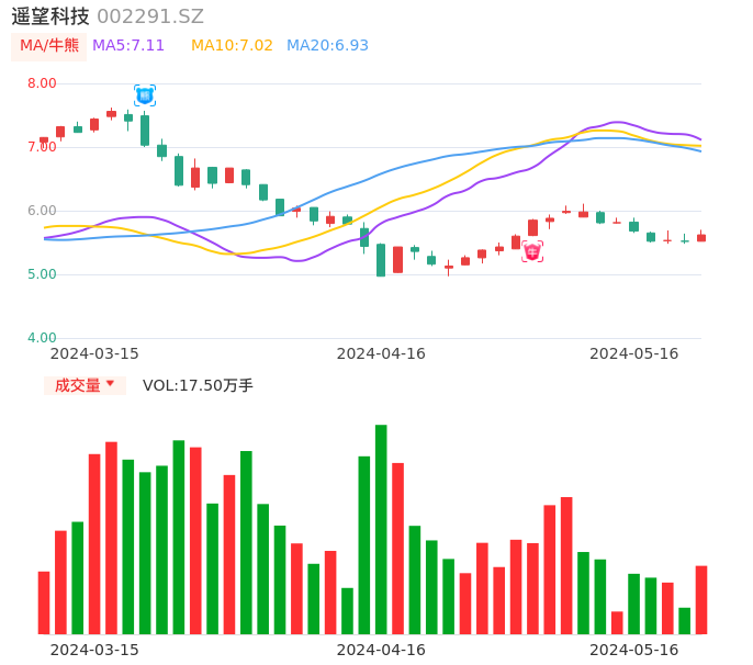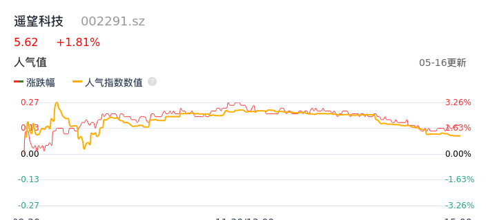 05月16日,遥望科技收报5.62,股价涨幅1.81%,成交金额9854.88万元,换手率1.99%。