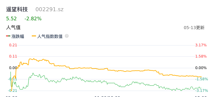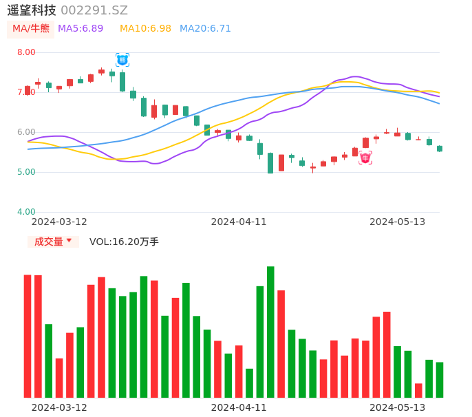 05月13日,遥望科技收报5.52,股价涨幅-2.82%,成交金额8998.90万元,换手率1.85%。