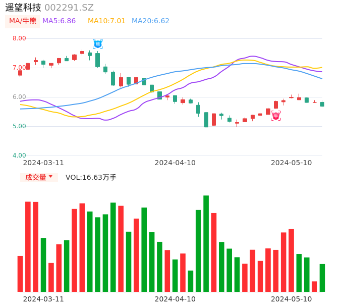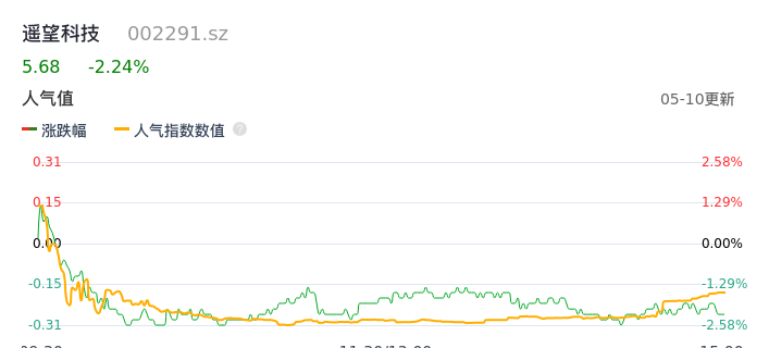 05月10日,遥望科技收报5.68,股价涨幅-2.24%,成交金额9486.97万元,换手率1.89%。