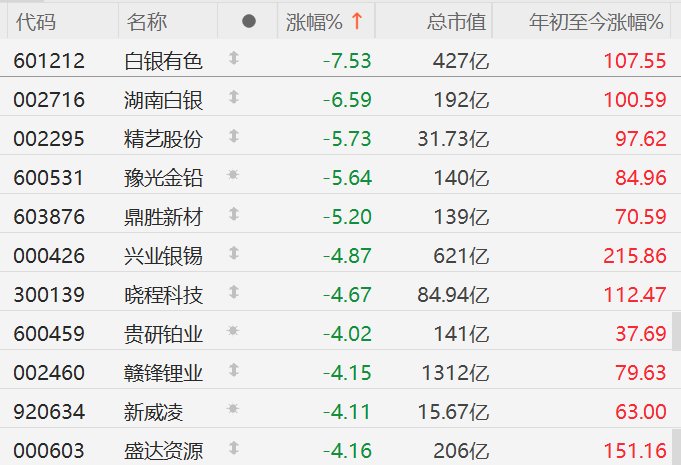 A股异动丨贵金属价格大跳水,有色金属股集体下挫,白银有色跌超7%