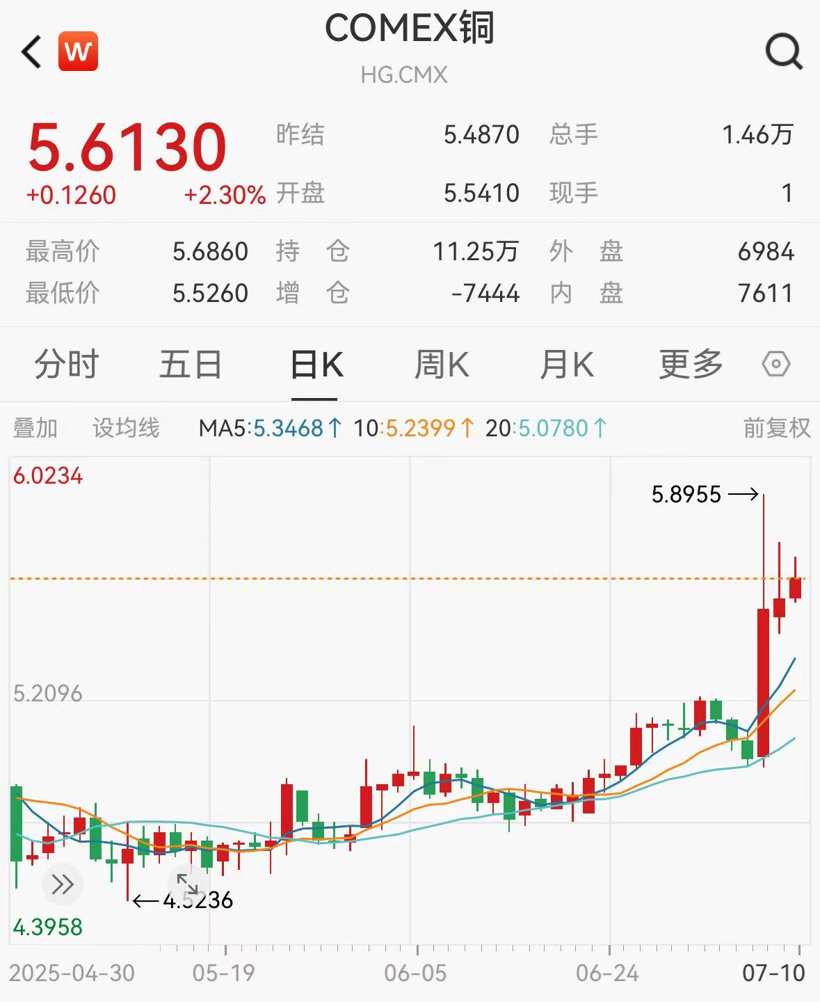 美国8月开始征收50%的铜关税,铜期货价格节节攀升。