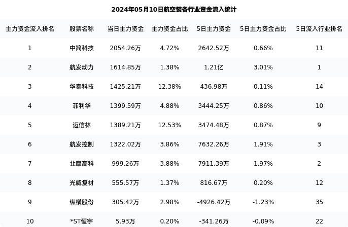从主力资金流向来看,航空装备行业今日主力资金流入52.83亿元,在所有申万二级行业中排名:17/131。