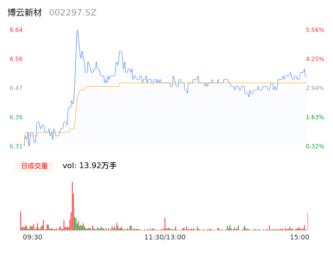 04月24日,博云新材收报6.54,股价涨幅3.97%,成交金额9036.51万元,换手率2.43%。