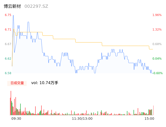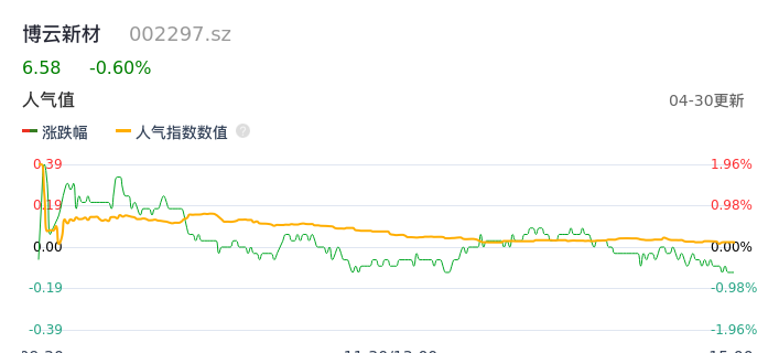 04月30日,博云新材收报6.58,股价涨幅-0.60%,成交金额7139.64万元,换手率1.87%。