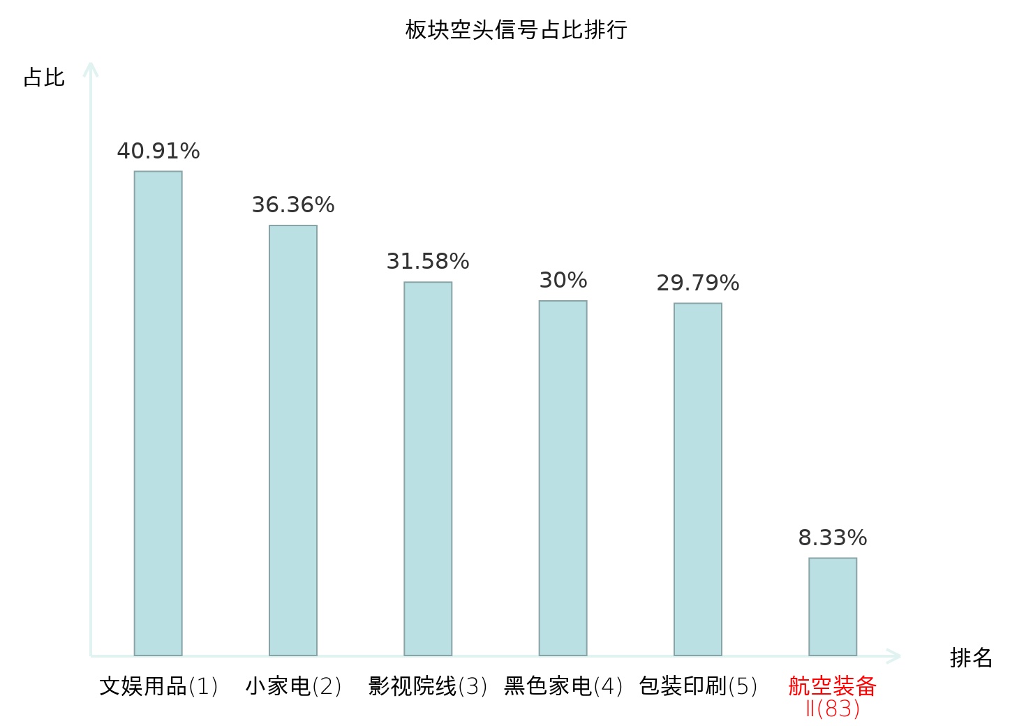 全市场所有行业板块中主力空头信号占比排名中,文娱用品板块位居第一。包装印刷板块名次提升最快,较昨日上升124位。