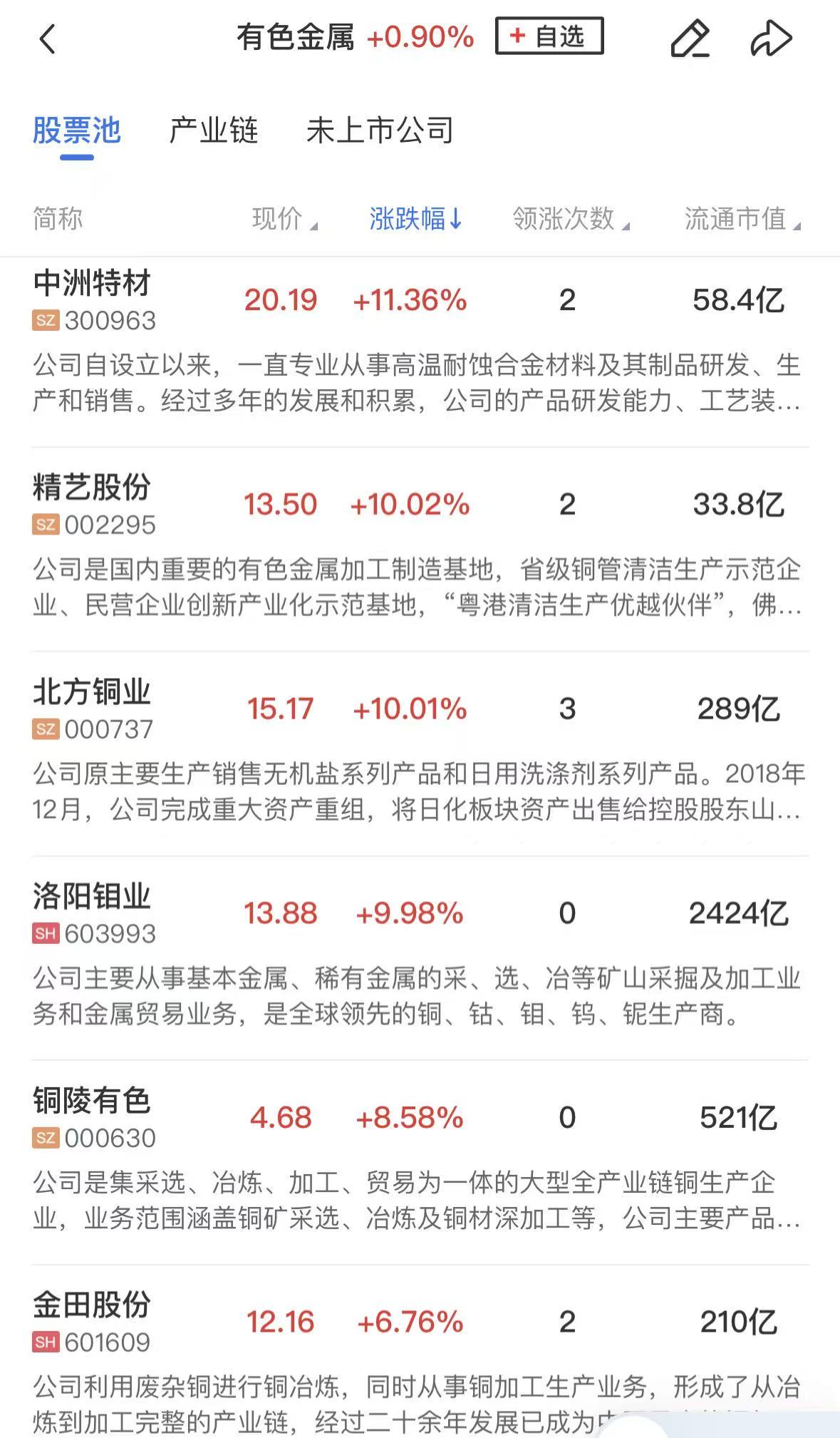 有色板块同样走强,北方铜业、精艺股份、洛阳钼业涨停,铜陵有色、金田股份、电工合金、紫金矿业涨幅居前。
