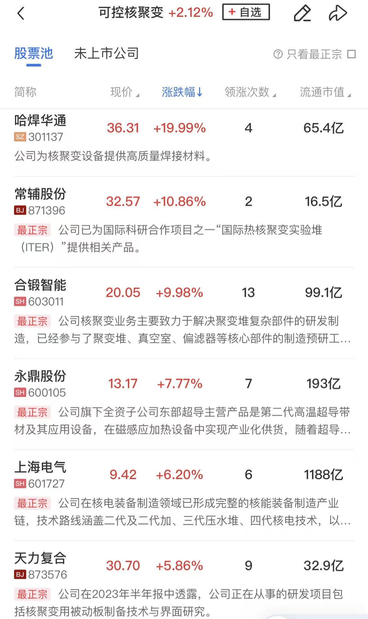 可控核聚变概念股震荡拉升,合锻智能4天2板,哈焊华通涨停,中洲特材、常辅股份、永鼎股份、金田股份等个股涨幅居前