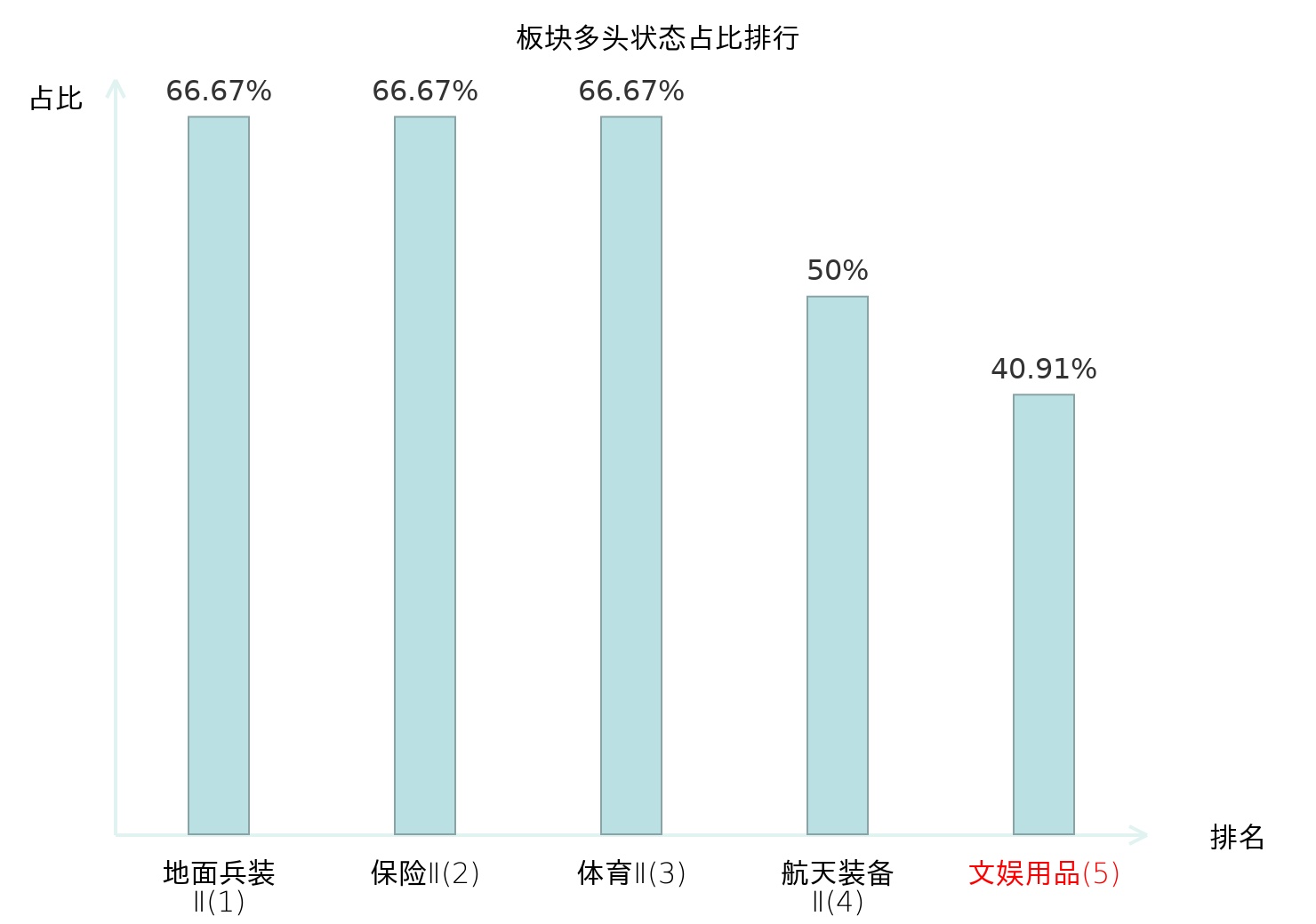 全市场所有行业板块中主力多头状态占比排名中,地面兵装Ⅱ板块位居第一。专业连锁Ⅱ板块名次提升最快,较昨日上升102位。