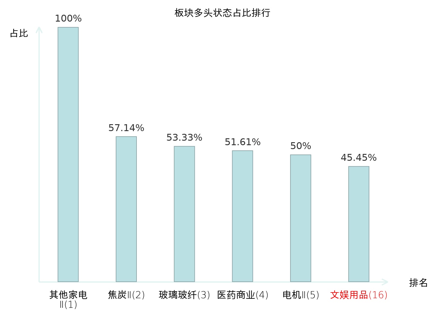 全市场所有行业板块中主力多头状态占比排名中,其他家电Ⅱ板块位居第一。白色家电板块名次提升最快,较昨日上升67位。