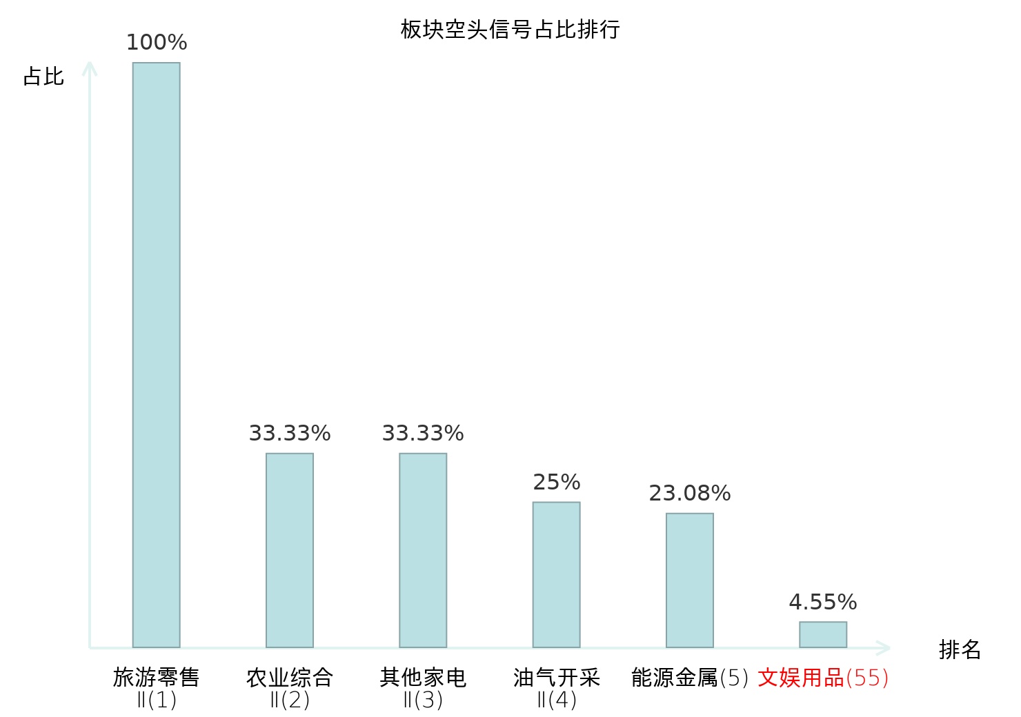 全市场所有行业板块中主力空头信号占比排名中,旅游零售Ⅱ板块位居第一。影视院线板块名次提升最快,较昨日上升105位。