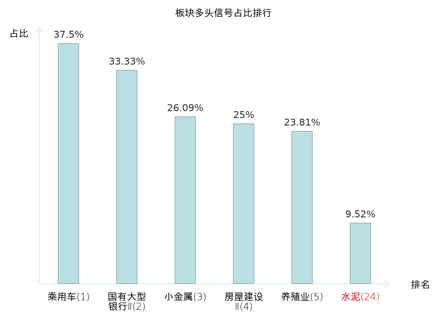 全市场所有行业板块中主力多头信号占比排名中,乘用车板块位居第一。国有大型银行Ⅱ板块名次提升最快,较昨日上升124位。