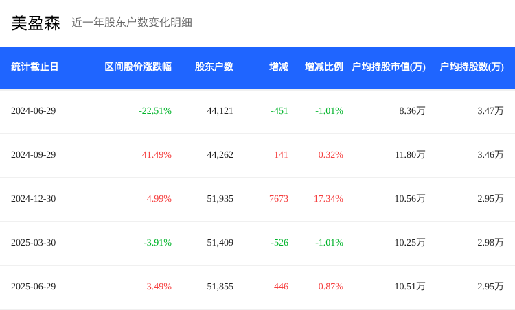 与行业数据对比,截至2025年6月30日,包装印刷行业的平均股东数和平均户均持股市值数据尚未公布。不过,美盈森的股东户数和户均持股市值的变化趋势与行业整体情况可能有所不同,具体还需等待行业数据的进一步披露。