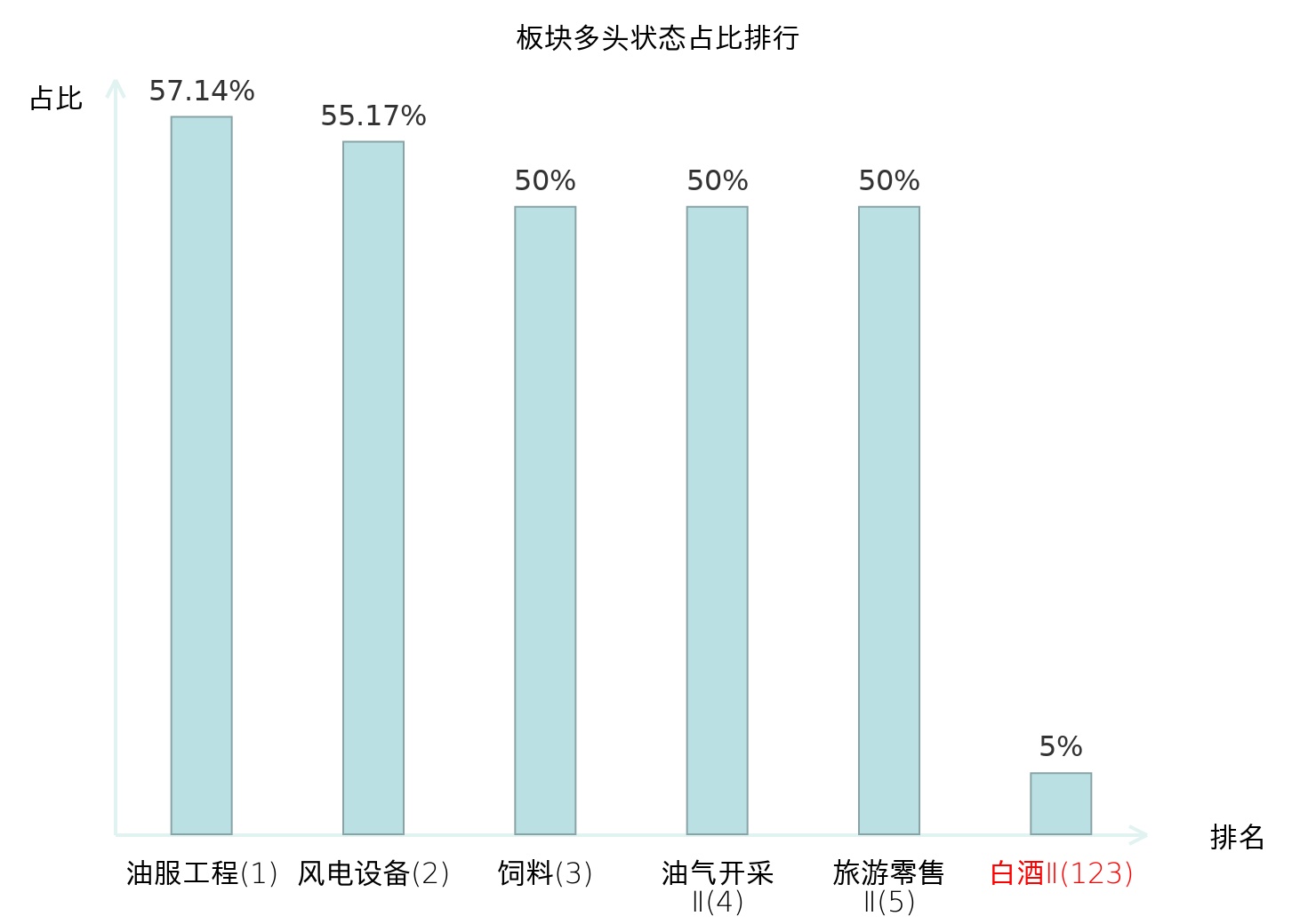 全市场所有行业板块中主力多头状态占比排名中,油服工程板块位居第一。非金属材料Ⅱ板块名次提升最快,较昨日上升67位。