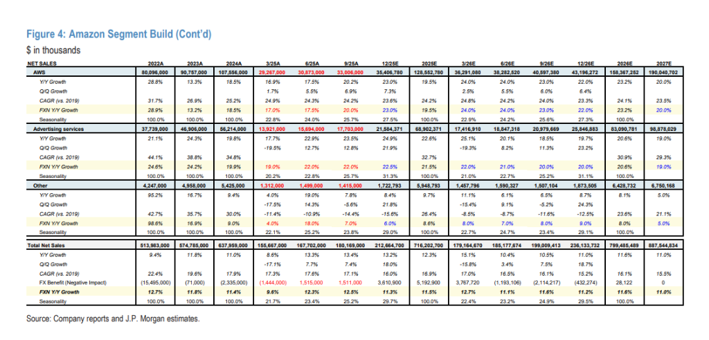Anthropic是亚马逊最重要的AI盟友之一,其Claude模型在AWS的Bedrock平台上销量领先。为了支持这一合作,双方共同打造的AI超级计算机“Project Rainier”正在迅速扩张,其搭载的Trainium 2芯片数量预计在年底前从约500万颗翻倍至超过100万颗。摩根大通估计,该项目在2026年可能为AWS带来约90亿美元的年化收入。