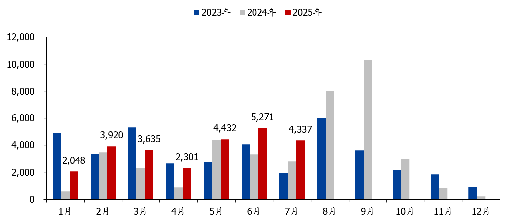 图表2:地方政府新增专项债月度发行额(单位:亿元)
