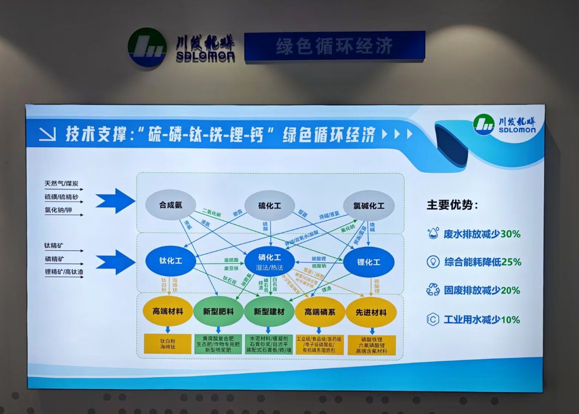 川酒“六朵金花”之一的剑南春通过“机械化+传统工艺”融合,既提升出酒率与名酒率,又保留“续糟配料、混蒸混烧、陶坛储存”的非遗技艺,旗下大唐国酒生态园二期工程投资16.67亿元,建成后将新增基酒年产能3.5万吨、储存能力2.5万吨,新增3000余个就业岗位;川发龙蟒作为硫磷钛循环经济标杆,通过产业链协同,进一步创新升级“硫-磷-钛-铁-锂-钙”多资源绿色循环经济产业链,让废水排放减少30%、综合能耗降低25%、固废排放减少20%,公司工业级磷酸一铵产能可达30万吨/年、稳居世界第一。
