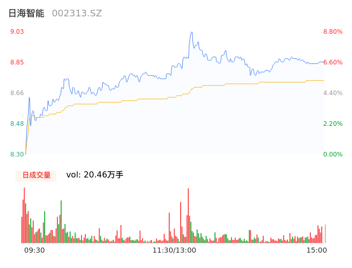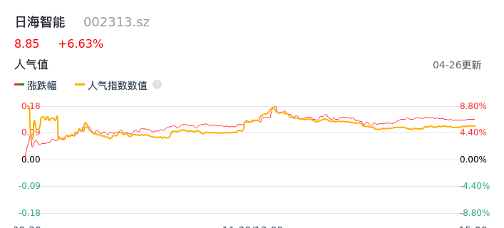 04月26日,日海智能收报8.85,股价涨幅6.63%,成交金额1.79亿元,换手率5.47%。
