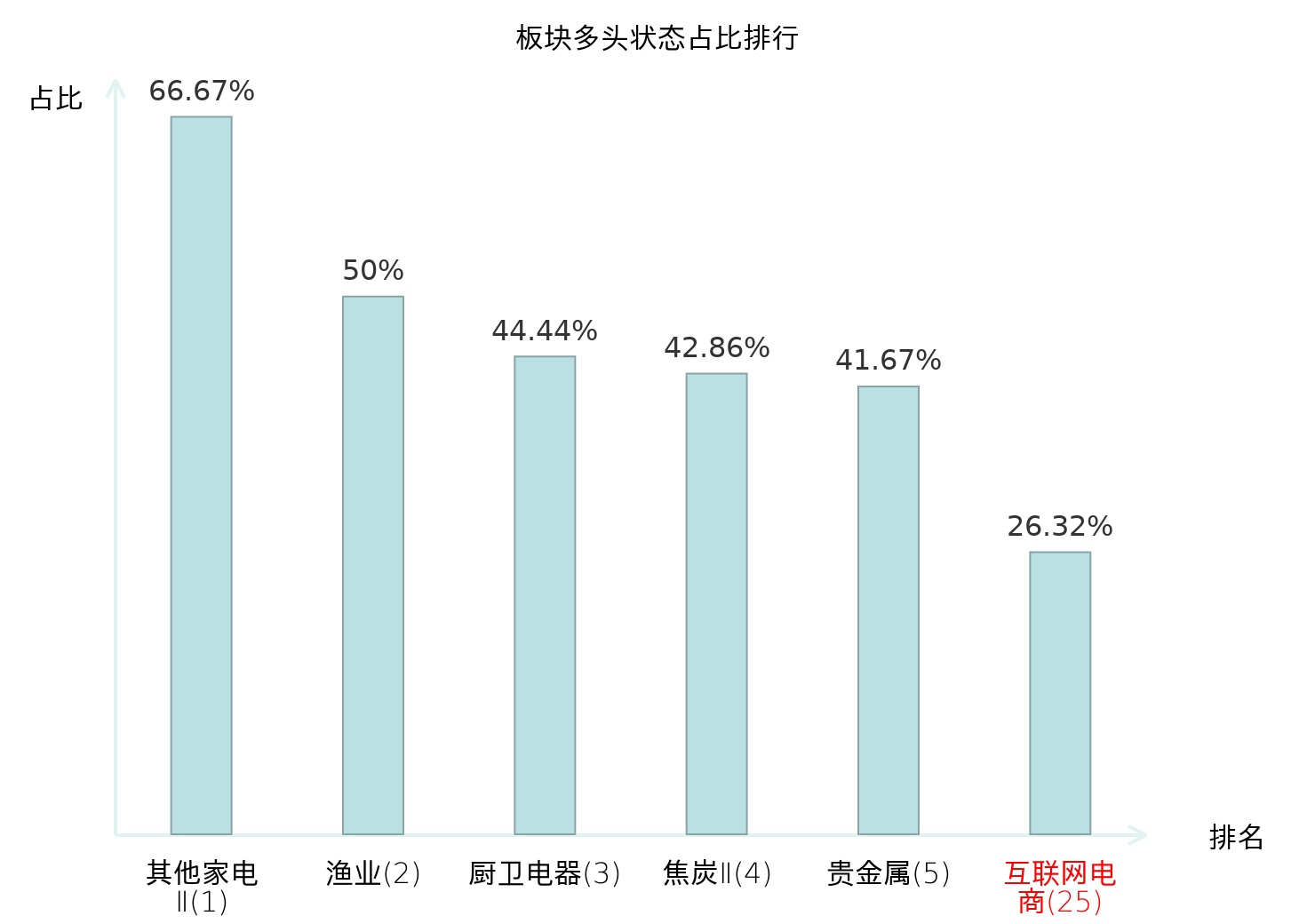 全市场所有行业板块中主力多头状态占比排名中,其他家电Ⅱ板块位居第一。乘用车板块名次提升最快,较昨日上升82位。