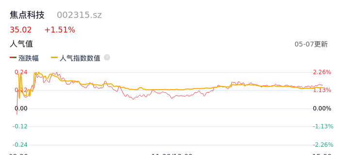 05月07日,焦点科技收报35.02,股价涨幅1.51%,成交金额1.60亿元,换手率2.26%。