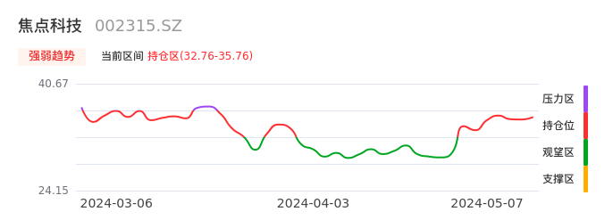 我们来看一下该股的九方特色指标强弱趋势的情况:焦点科技自04月24日从观望区上穿到持仓区。股价近期在多头区域持续强势上扬,上升动能仍较为充足,可积极关注。后续重点关注上方压力位:35.76元是否能突破上攻。