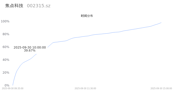 根据成交分布分析,该股票当天放量成交,成交清淡。时间上看,早盘前半小时成交量占据当天总成交量的39.67%;价格上看,成交呈现右偏峰。成交分布分析主要研究股票成交的分布特性,不具有预测功能,请知悉。