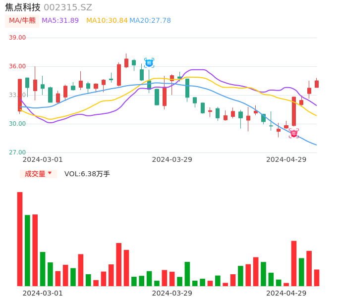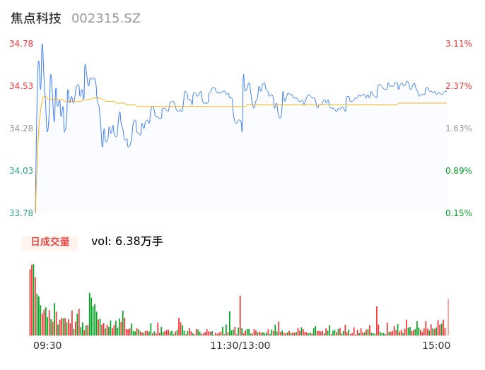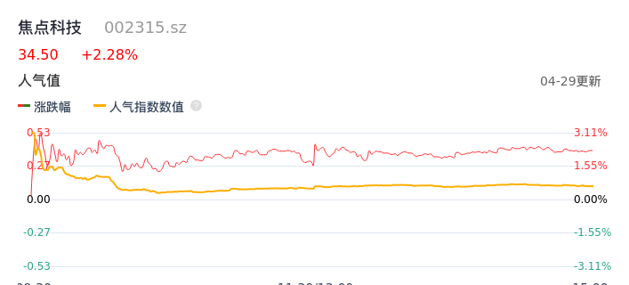 04月29日,焦点科技收报34.50,股价涨幅2.28%,成交金额2.20亿元,换手率3.16%。