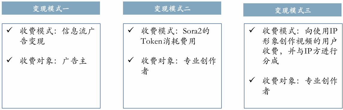 Sora App的变现方式:广告、创作者付费、与IP方合作。