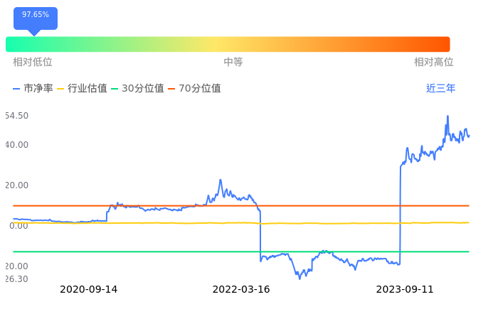 亚联发展当前市净率PB为45.22,在所属的多元金融中,市净率PB排31,前五名分别为渤海租赁市净率0.55、五矿资本市净率0.58、经纬纺机市净率0.64、爱建集团市净率0.68、中油资本市净率0.84。亚联发展当前市净率PB为45.14,超过近3年97.65%的历史数据。