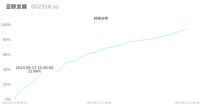 002316亚联发展2023年09月13日成交12.94万手,成交金额6511.08万元,相较昨日缩量2.79万手,换手率4.11%,成交清淡。
