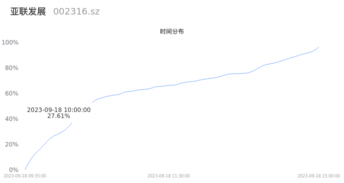 002316亚联发展2023年09月18日成交9.89万手,成交金额4951.80万元,相较昨日放量96手,换手率3.14%,成交清淡。