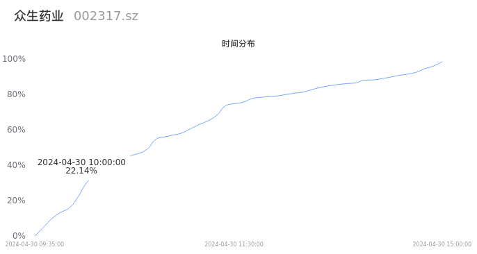 002317众生药业2024年04月30日成交17.31万手,成交金额2.63亿元,相较昨日放量7797手,换手率2.27%,成交清淡。