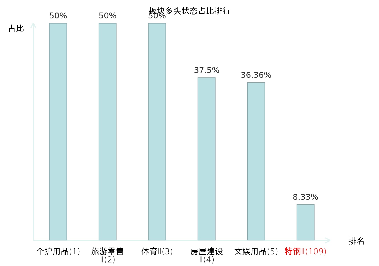 全市场所有行业板块中主力多头状态占比排名中,个护用品板块位居第一。焦炭Ⅱ板块名次提升最快,较昨日上升68位。