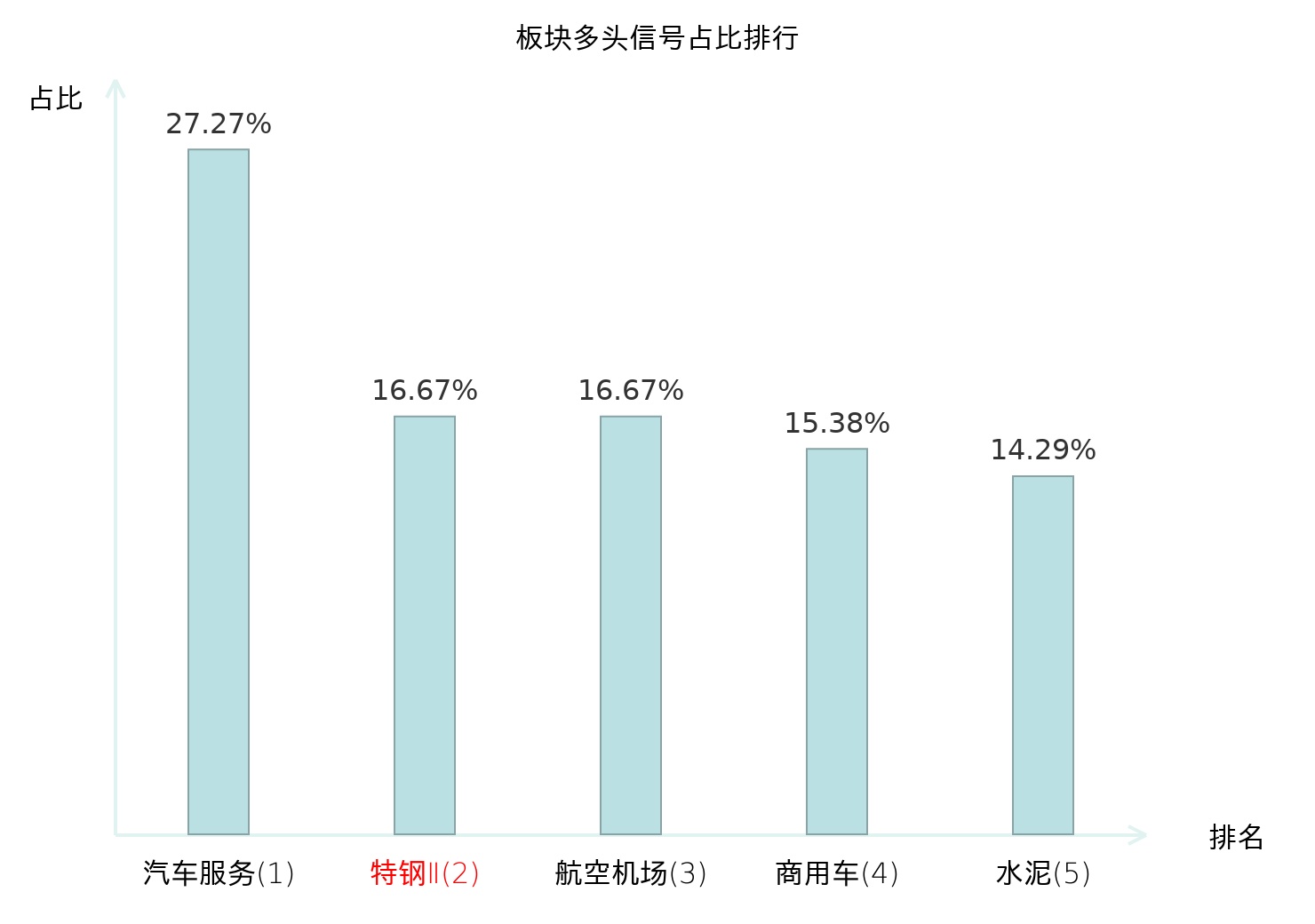 全市场所有行业板块中主力多头信号占比排名中,汽车服务板块位居第一。汽车服务板块名次提升最快,较昨日上升112位。