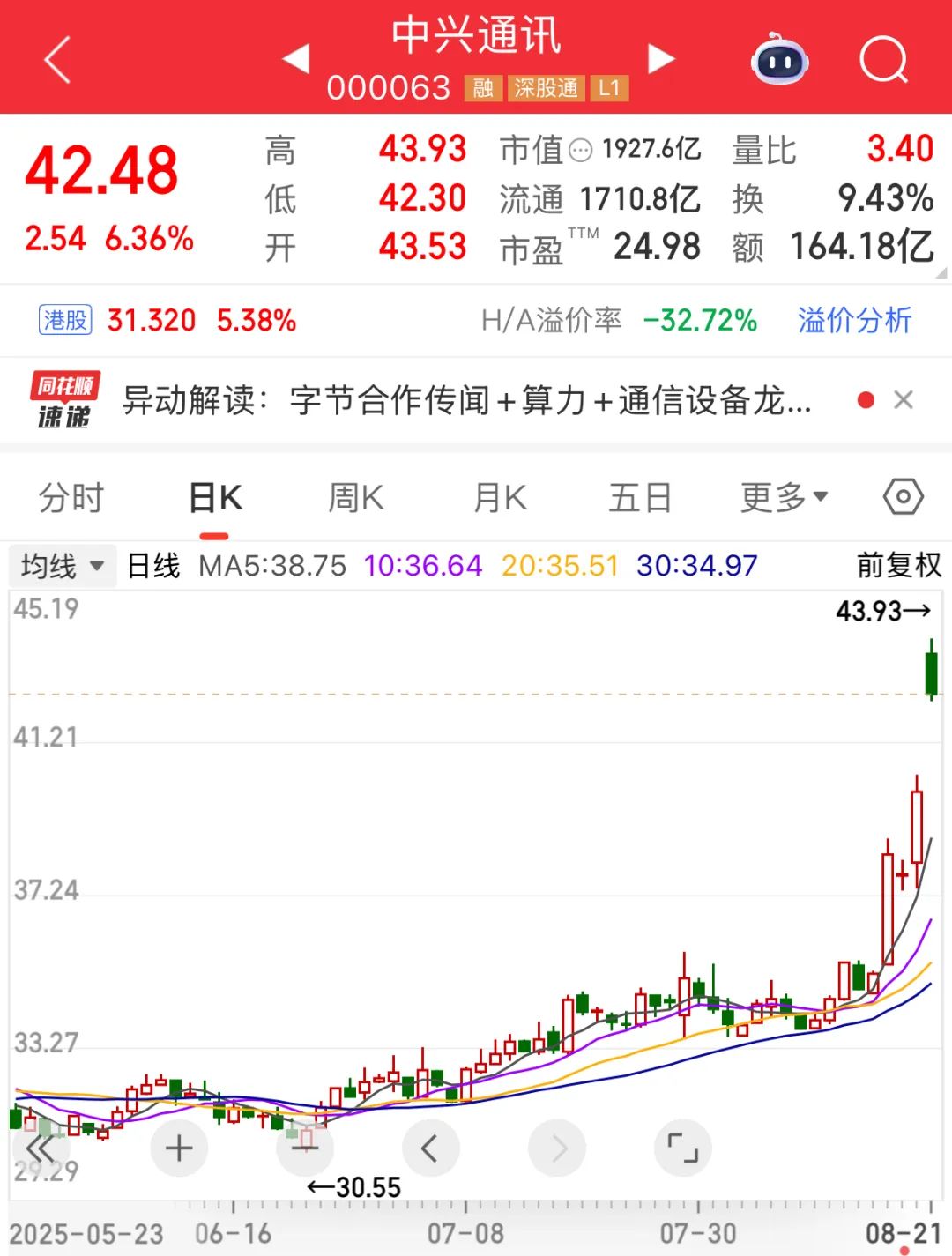 中兴通讯AH股开盘双双大涨