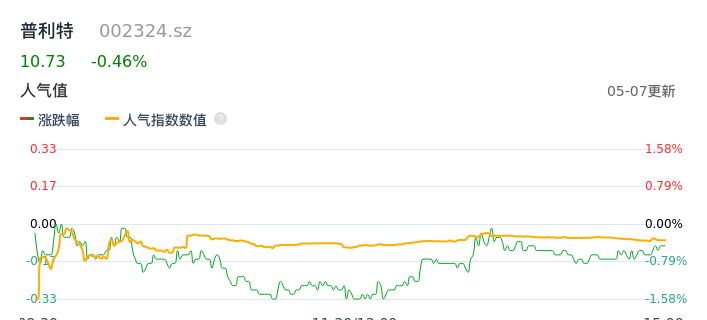 05月07日,普利特收报10.73,股价涨幅-0.46%,成交金额1.45亿元,换手率1.75%。