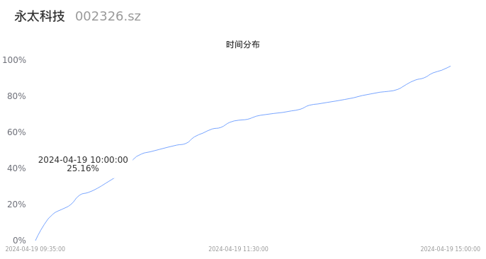 002326永太科技2024年04月19日成交10.96万手,成交金额9898.58万元,相较昨日缩量2.67万手,换手率1.36%,成交清淡。