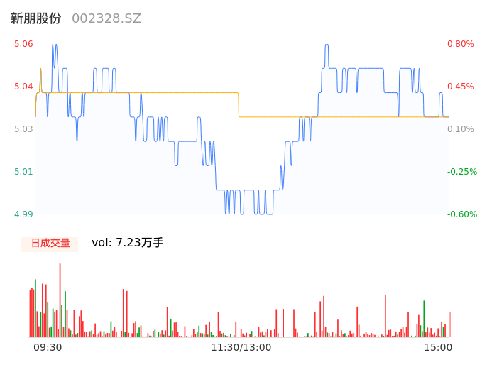 04月30日,新朋股份收报5.03,股价涨幅0.20%,成交金额3638.29万元,换手率1.27%。
