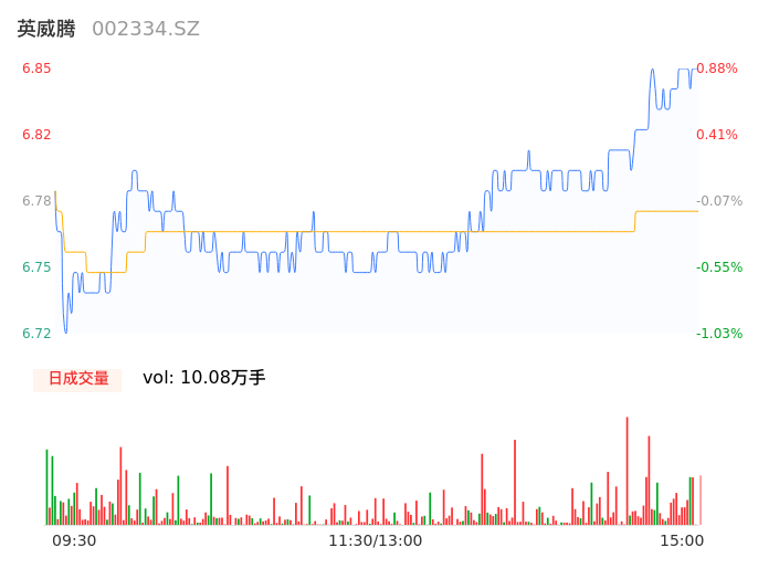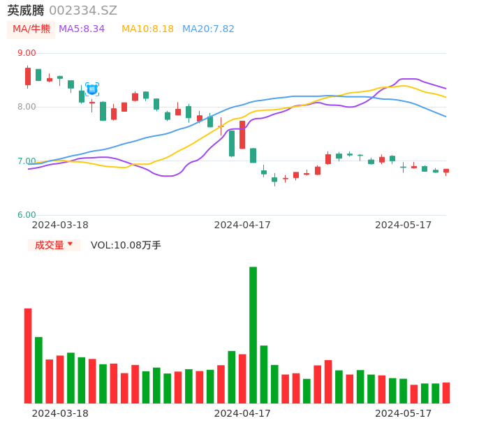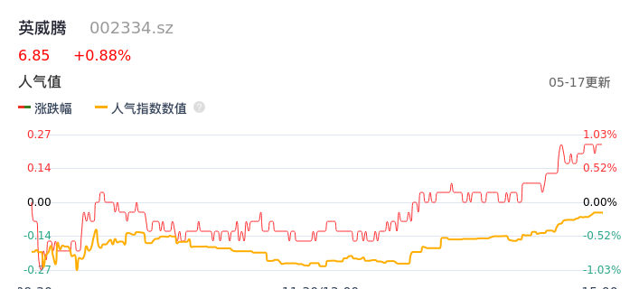 05月17日,英威腾收报6.85,股价涨幅0.88%,成交金额6836.65万元,换手率1.40%。