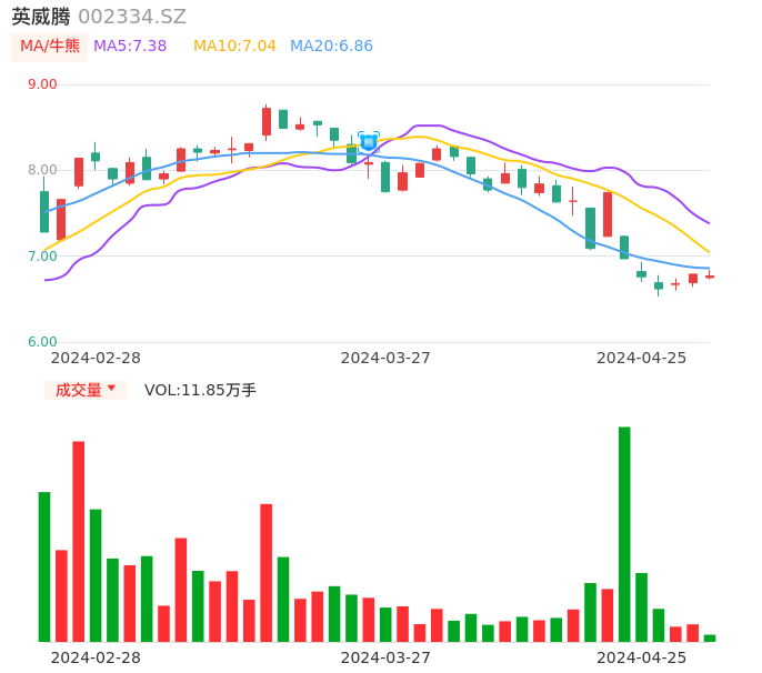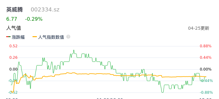 04月25日,英威腾收报6.77,股价涨幅-0.29%,成交金额8033.01万元,换手率1.66%。