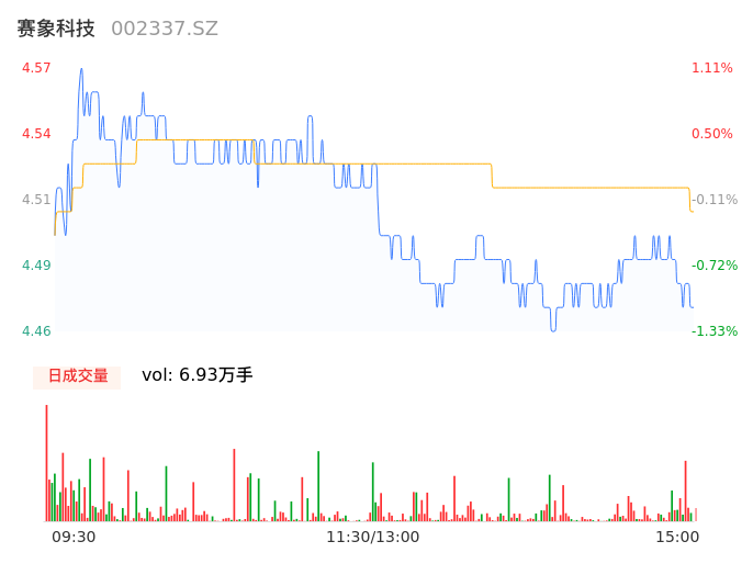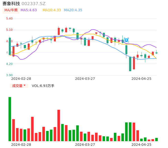 04月25日,赛象科技收报4.48,股价涨幅-0.88%,成交金额3127.63万元,换手率1.18%。