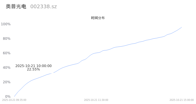 002338奥普光电2025年10月21日成交6.68万手,成交金额3.71亿,相较昨日缩量1.92万手,换手率2.78%,成交清淡。