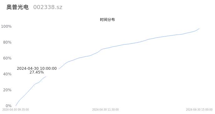 002338奥普光电2024年04月30日成交4.82万手,成交金额1.32亿元,相较昨日缩量1.09万手,换手率2.01%,成交清淡。