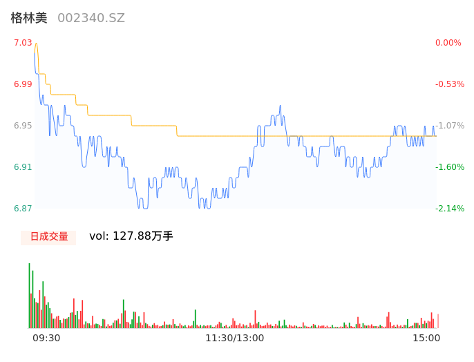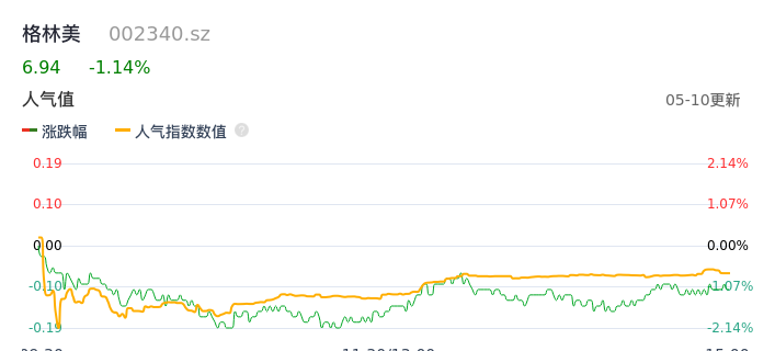 05月10日,格林美收报6.94,股价涨幅-1.14%,成交金额8.87亿元,换手率2.51%。